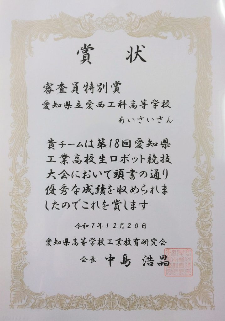12/20(土)刈谷市産業振興センターにて「第18回愛知県工業高校生ロボット競技大会」が開催されました。県内の工科(工業)高校20チームが出場し、愛西工科高校機械科チーム「あいさいさん」は昨年に引き続いての優勝は逃しましたが、審査員特別賞を受賞しました!(大会ルールはこちら)
