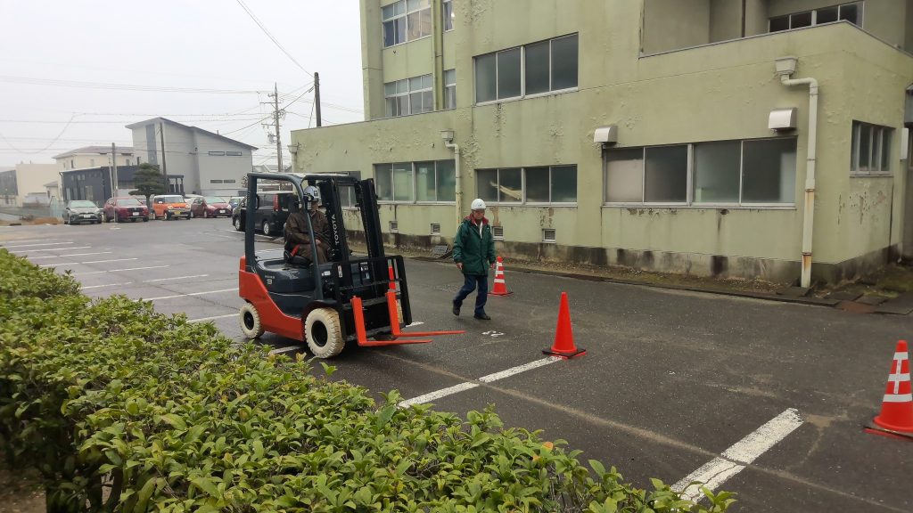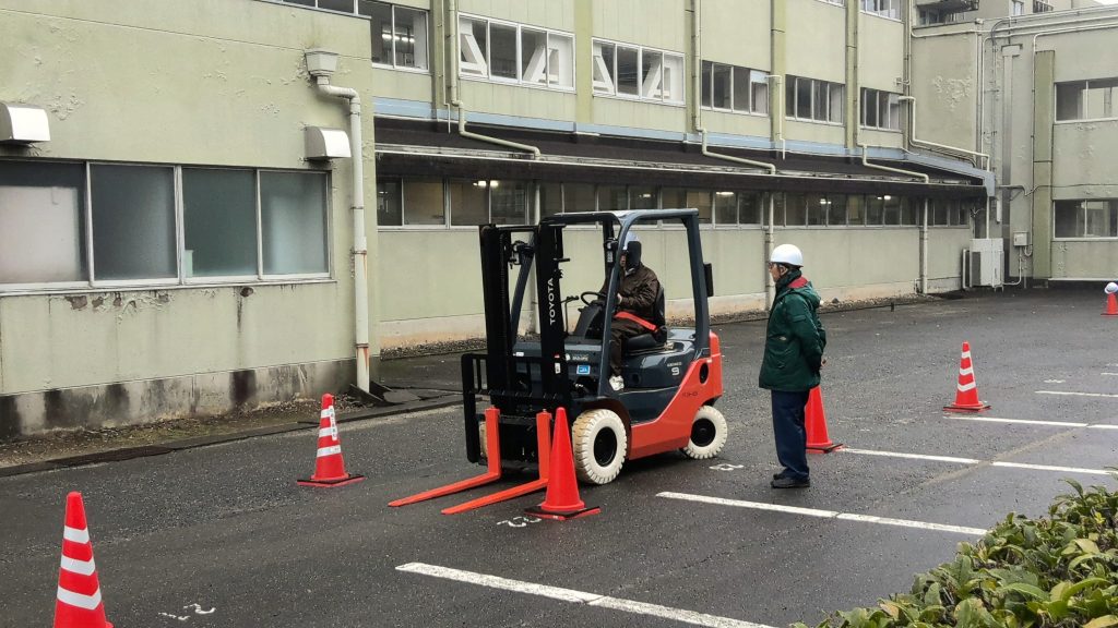 お知らせ/学校生活 小型フォークリフト特別教育実施 2025年12月25日 R7/12/24,25の2日間、 キャタピラー教習所株式会社様より講師をお招きし、2,3年生の希望者に本校にて小型フォークリフト特別教育を実施しました。小雨混じりの天候ではありましたが、「学科講習」「技能講習」ともに、熱心に取り組んでいました。 夏休み期間中には、2,3年生の希望者に「小型車両系建設機械特別教育」の講習会も実施しています。会場はキャタピラー教習所名古屋営業所となります。